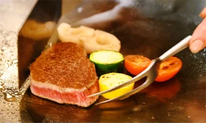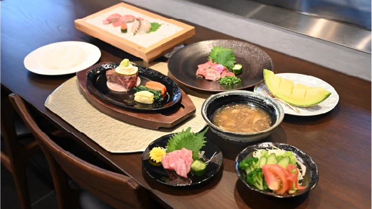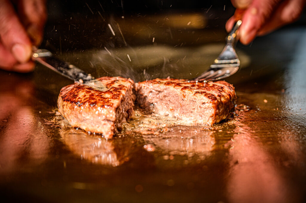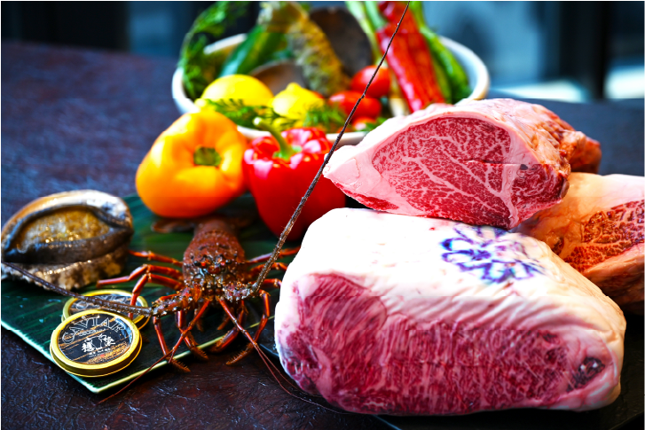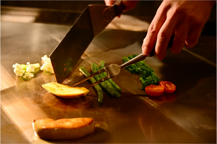 銀座高級鉄板焼き店でミシュラン一つ星獲得経験ある料理長が神戸牛と厳選食材を使用し、『和』と『洋』のエッセンスを加えた『料理長おまかせコース』『世界三大珍味コース』をご提供いたします。伝統的な調理法にシェフ独自のセンスを加えた一皿一皿は、まさに芸術品。
